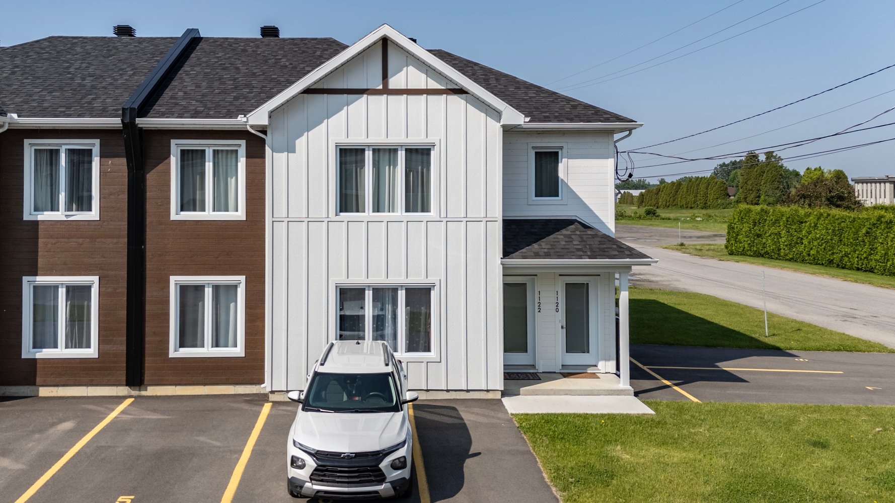 DUPLEX jumelé 2023, située au coeur de l'activité industrielle de Bécancour. (2) X 4,5 logements; 1200 p² chacun, RBP - 39,300$, 2025-07-01. Grands espaces ouverts, très lumineux, (4) stats., borne pour voiture électrique ou prévisions pour bornes et remises annexées. Seulement (15) min. du Casino Wolinak, usines, aluminerie et port de Bécancour. Écoles primaires et secondaires à proximité. Développement récent adossé au Centre Équestre de Bécancour et du Club de Golf Gentilly. Projet totalisant 16 portes OU (4X QUADRUPLEX) OU (8X DUPLEX) aux adresses 1120 à 1190, des Oiselets - plusieurs offres selon capacité financière. Secteur prometteur!