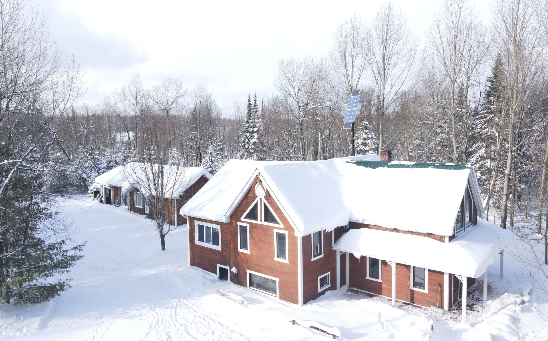 Self-sufficient home in the heart of nature If you aspire to an independent, peaceful life surrounded by nature while enjoying modern comforts, this fully self-sufficient home will meet your expectations. Built in 2004, it sits on nearly 2 acres of land with a spacious garage (40 x 40 feet) built in 2024 and a 16 x 55-foot shed. Bordered by a stream that creates a relaxing atmosphere. Located in the heart of the Mont Mégantic valley, enjoy picturesque landscapes, hiking trails, and an environment free from noise and pollution.