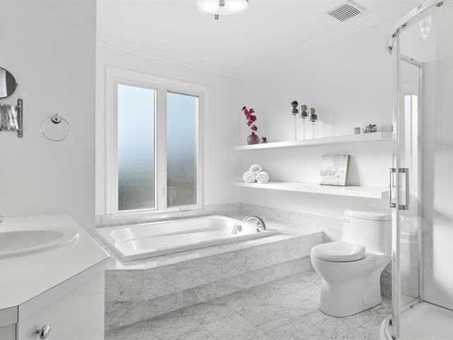 Set on two lots totaling 4,058.9 square meters/43689 square feet, the property enjoys a very private setting with beautifully landscaped grounds designed to fully benefit from the outdoors. A spacious 600 square foot deck overlooks the property, ideal for entertaining or relaxing in total tranquility.