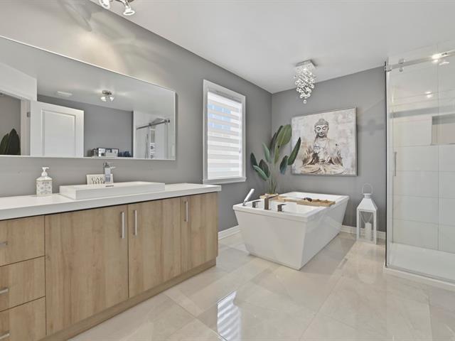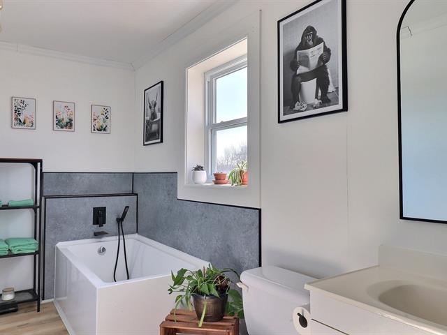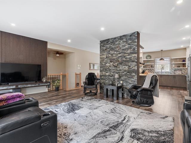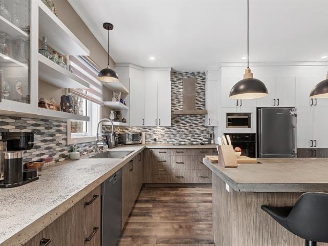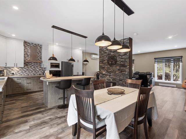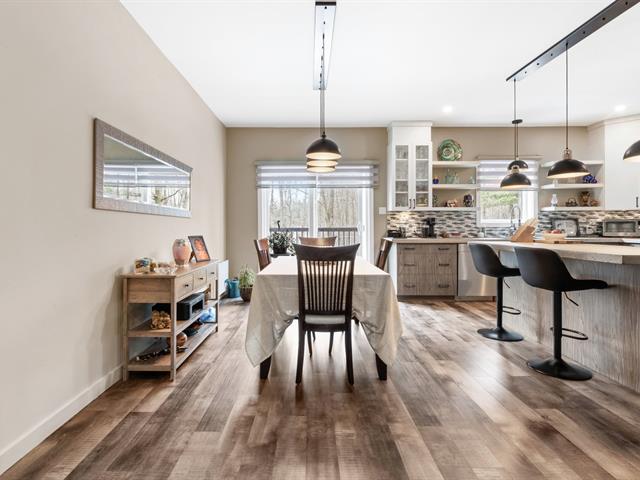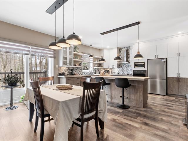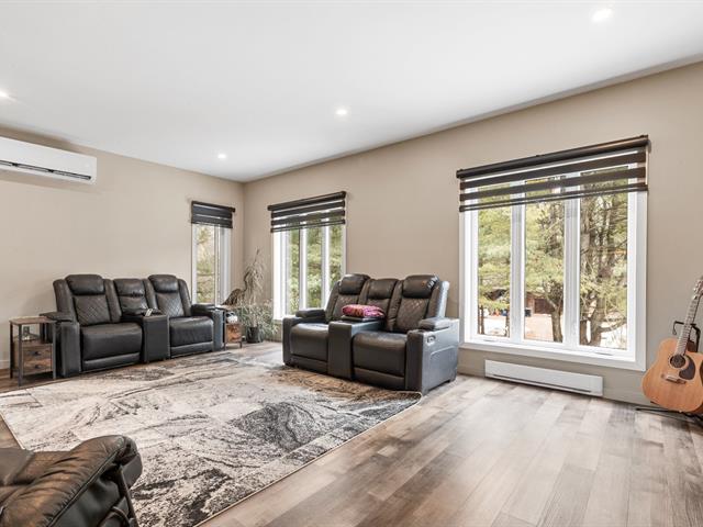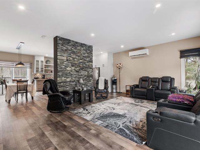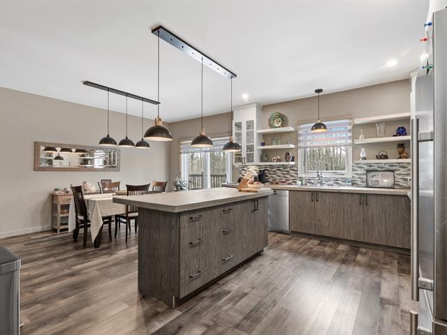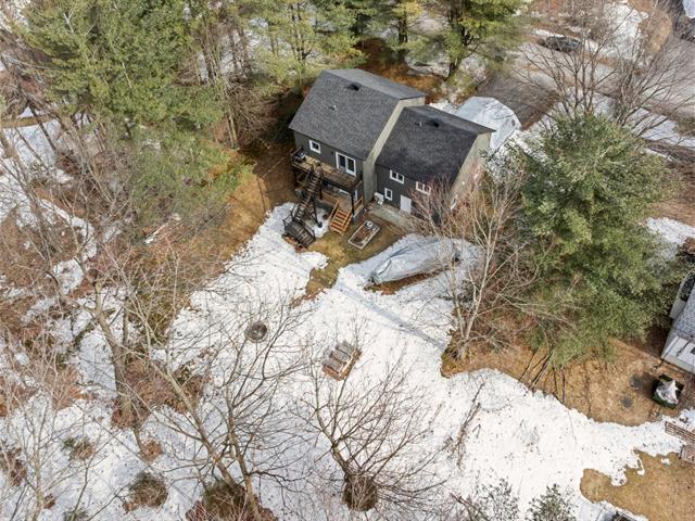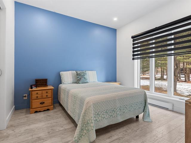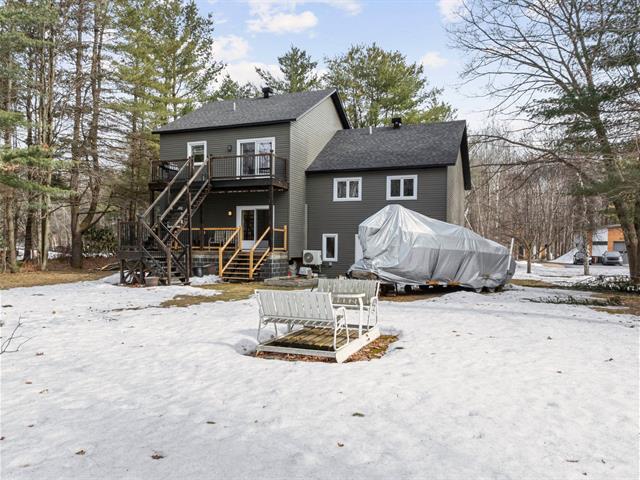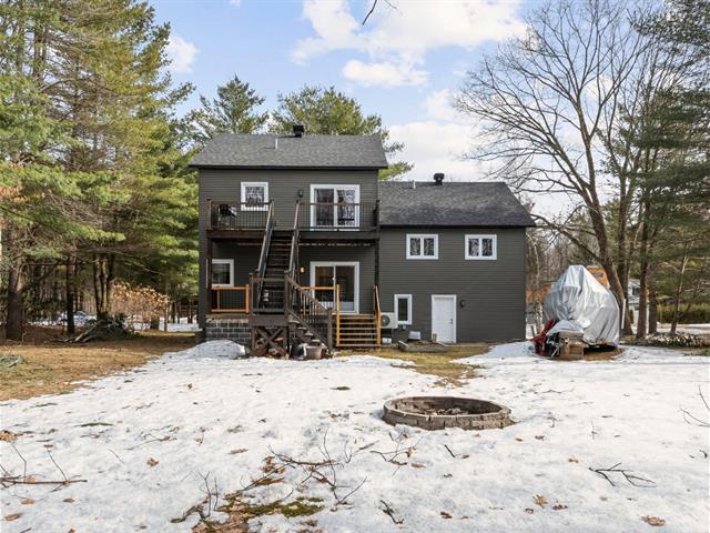 Impeccable 2018 home -- no work to be done! Offering 3 bedrooms and 3 bathrooms, including a main-floor primary bedroom with ensuite bathroom. Notarized access to Lake Caroline on a quiet dead-end street. Open-concept layout with cathedral ceilings, propane fireplace, large kitchen island, abundant natural light. 600 sq. ft. deck, attached & detached garages, 2 driveways. 43689 sf across 2 lots. 10 min to Morin-Heights and 1 hour from Montreal.