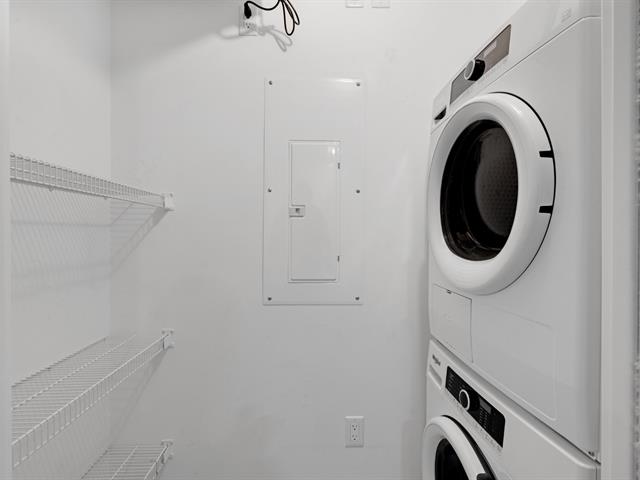 Beautiful condo meticulously maintained by its owner, located on the 3rd floor with no upstairs neighbors, offering peace and comfort. This bright unit features 2 good-sized bedrooms, an open-concept living space, and hardwood floors throughout. The laundry room includes a practical workshop and storage area, a rare condo feature. Ideally located close to all services: grocery stores, shops, parks, schools, quick access to Highway 640, and near the REM. A turnkey property perfect for enjoying a convenient and comfortable lifestyle.