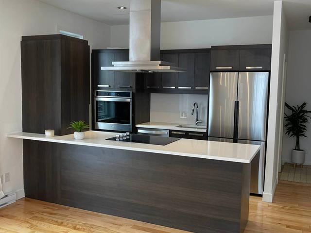 Luxurious condo along the Rivière des Prairies in Laval. Ideally located on the west side, offering greater tranquility, abundant natural light, and a RARE unit with an oversized balcony! This condo features 1 bedroom + 1 office/bedroom + a large storage/laundry room, along with indoor parking equipped with an electric vehicle charging station. Enjoy amenities such as an indoor pool and a state-of-the-art gym. Located just two minutes from Cartier metro and Montreal. Condo fees include heating, air conditioning, hot water, natural gas, and the EV charging station.This unit offers numerous upgrades and plenty of storage.