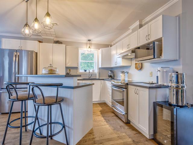 STUNNING! This meticulously maintained and renovated two-story home offers 3+1 bedrooms, including a master suite with ensuite bathroom and walk-in closet, a stunning kitchen with island and granite countertops, a four-season sunroom with wood stove, a living room with wood fireplace, central heating and air conditioning, a finished basement with family room and large wine cellar, a double garage, all situated on a beautiful 20,053 sq ft lot with no back neighbor, a shed and direct access to recreationnal trails. Located in the looked for Chanterelle neighbourhood, just 5 minutes from Highway 40 and all amenities.