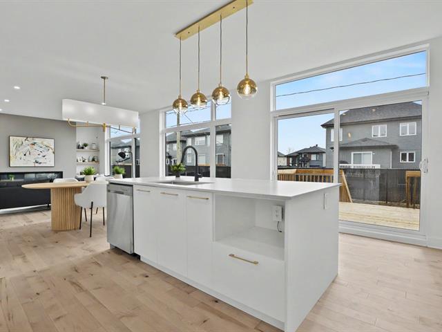 Two-story home situated on an 8,615 sq ft lot, featuring four bedrooms upstairs. The room above the garage is currently used as a family room but could easily be converted into a spacious bedroom. Enclosed foyer. Functional 2023 kitchen with island and quartz breakfast bar, dining room with banquette seating and beverage area. Second-floor bathroom with soaker tub and ceramic shower. Basement includes a large family room, storage, a cold room, and a second bathroom with a ceramic shower and heated floors. Attached, heated garage. Landscaped and fenced yard with a deck. 10 x 16 ft shed.