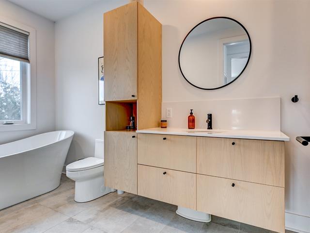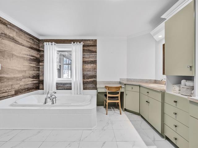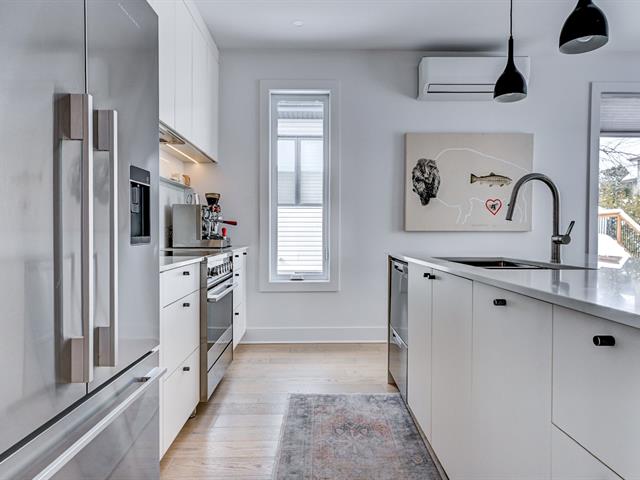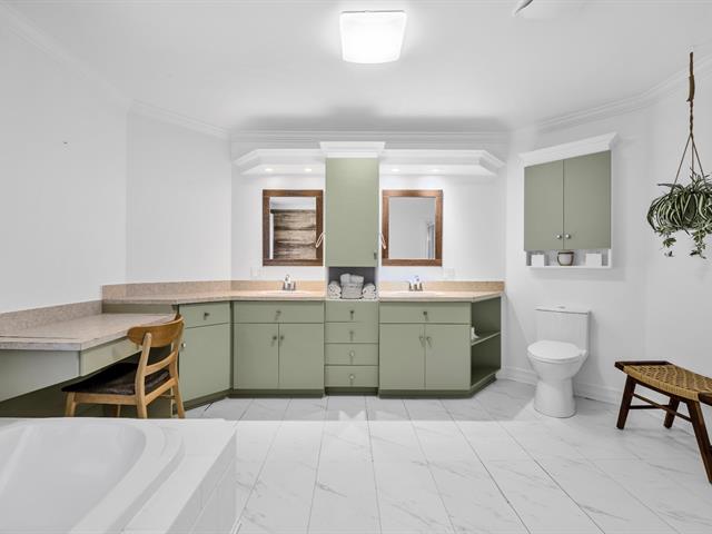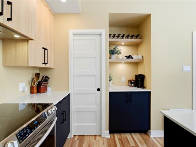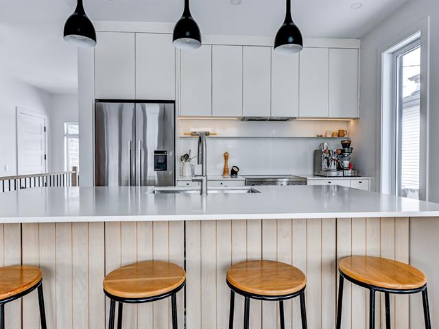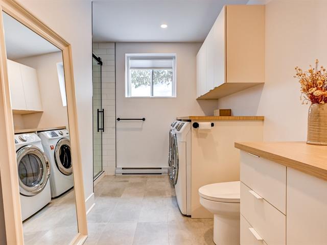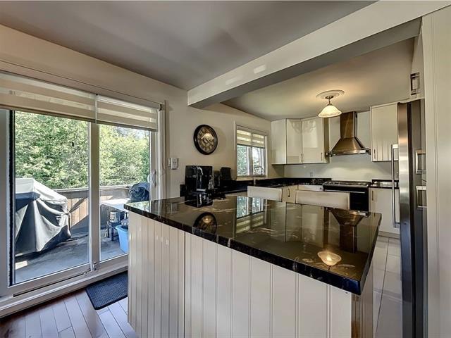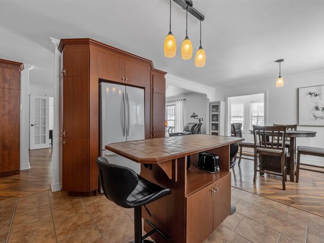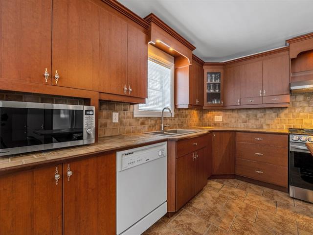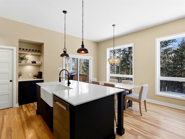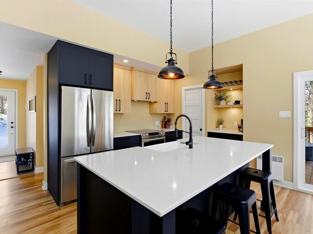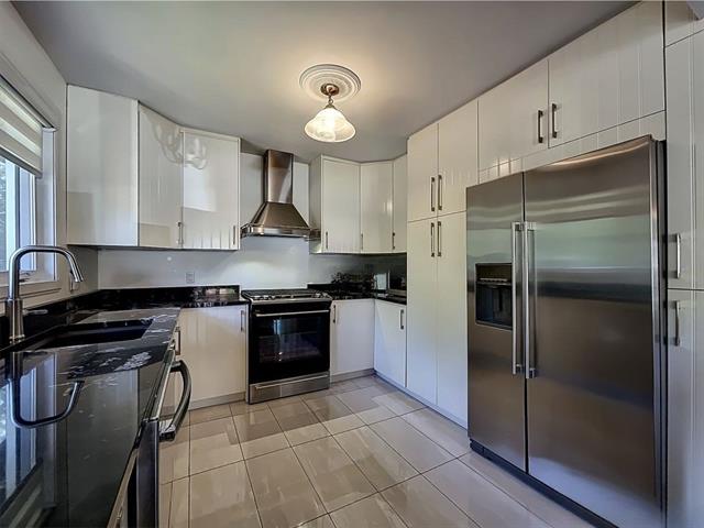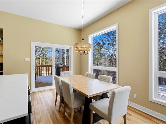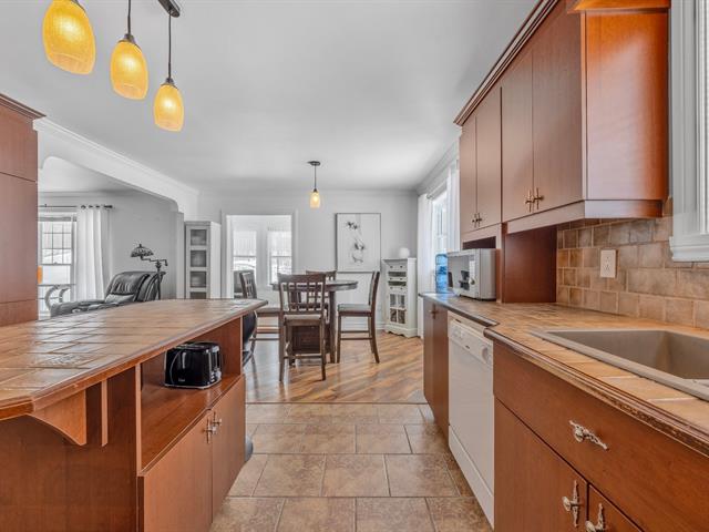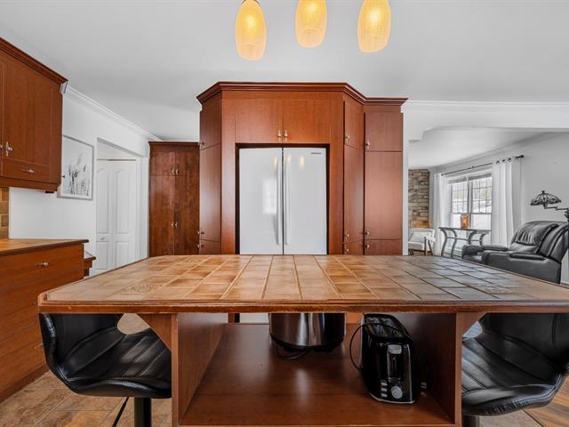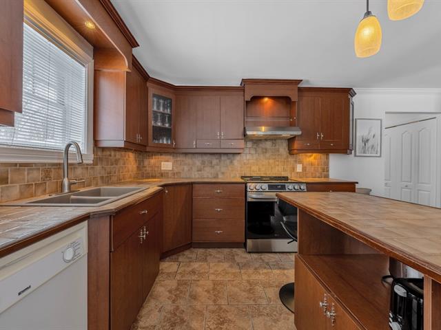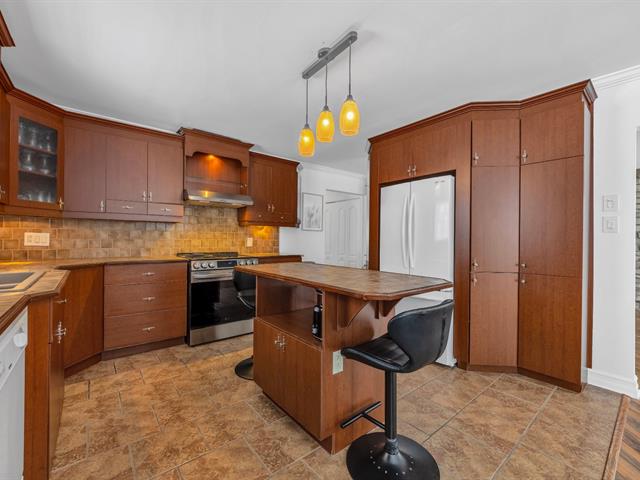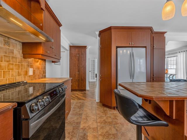 La cuisine offre une abondance d'armoires en merisier pleine hauteur, maximisant le rangement tout en conservant une belle élégance. La généreuse fenestration dans toutes les pièces inonde la maison de lumière naturelle et crée une atmosphère chaleureuse.