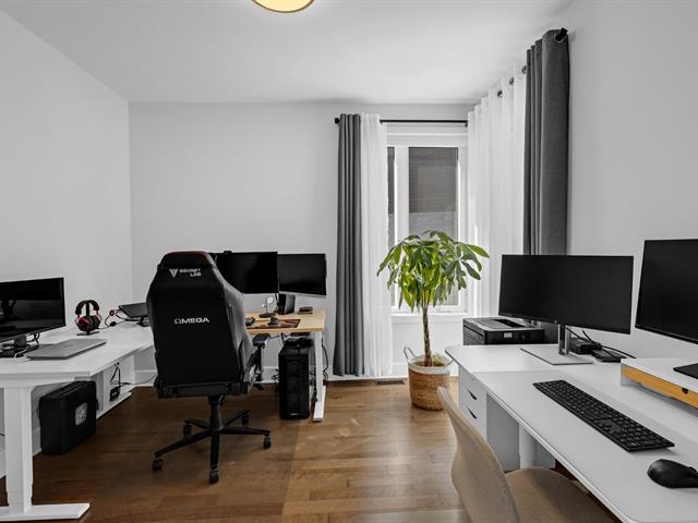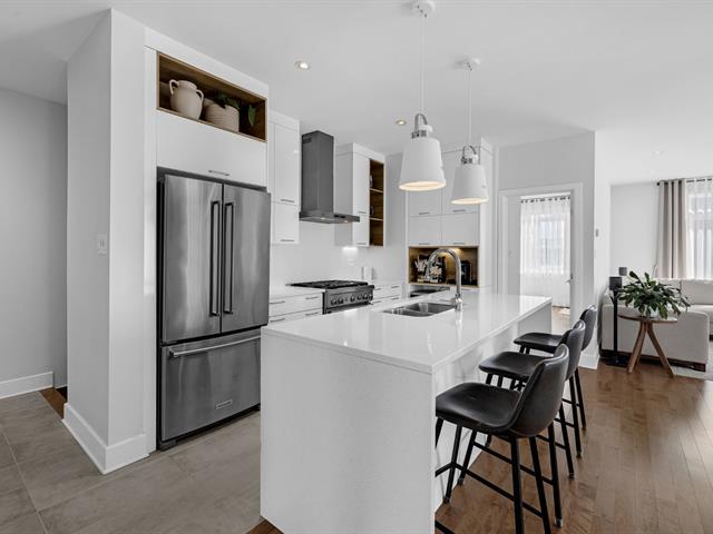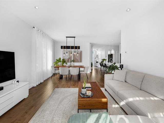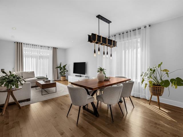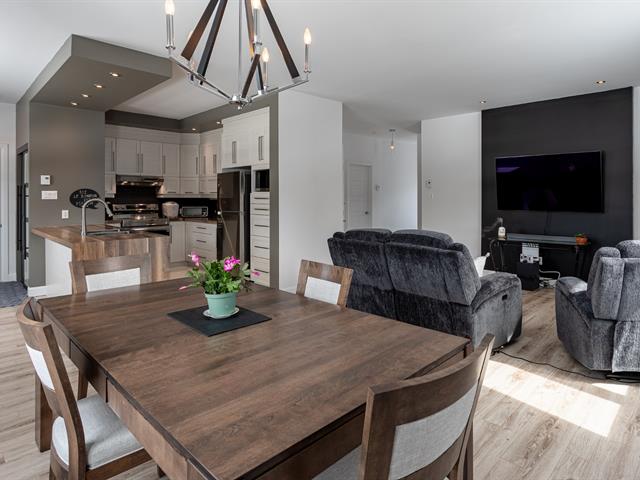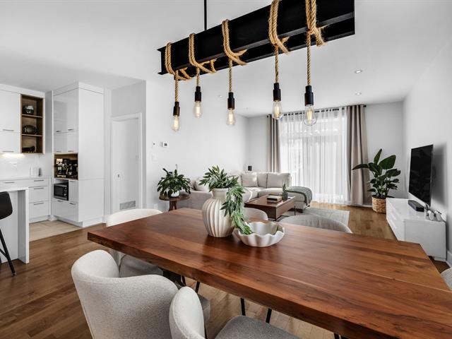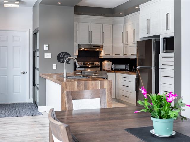 Impeccable condo situé au deuxième étage, offrant un garage intérieur, un espace de rangement sur le balcon, un stationnement extérieur et une thermopompe central. La cuisine est munie d'un îlot central, et le salon, agrémenté d'un foyer au gaz naturel, procure une ambiance chaleureuse. La propriété comprend deux chambres à coucher, dont une chambre principale avec walk-in, ainsi qu'une salle de bain équipée d'une douche indépendante. À proximité du parc de la Seigneurie et de toutes les commodités, avec un accès rapide aux autoroutes 25 et 640. Occupation et acte notarié flexibles. Excellente gestion du syndicat de copropriété.