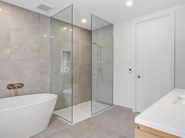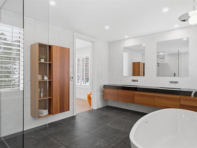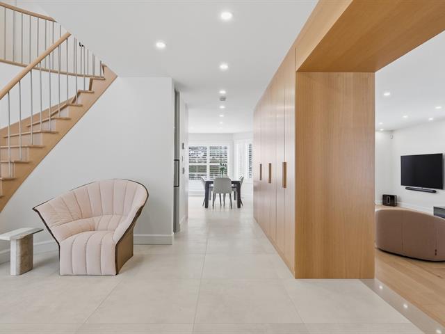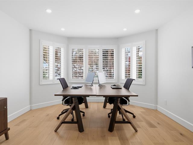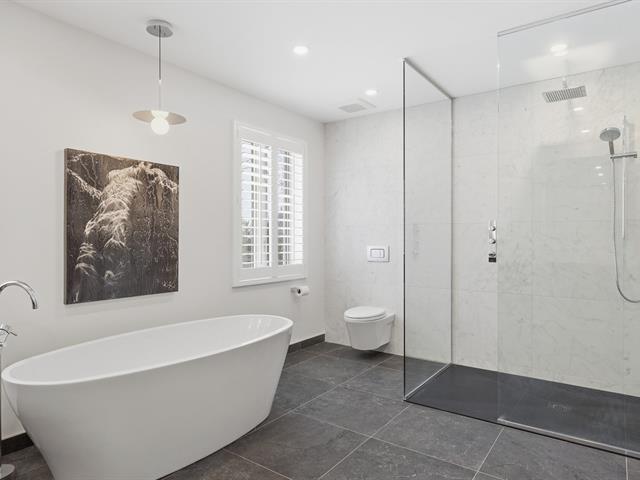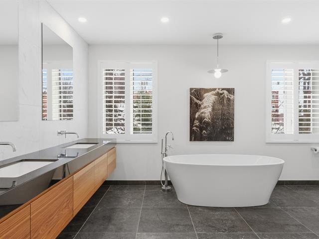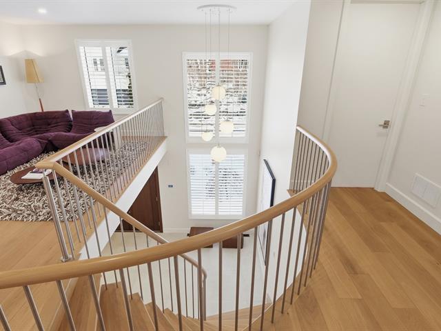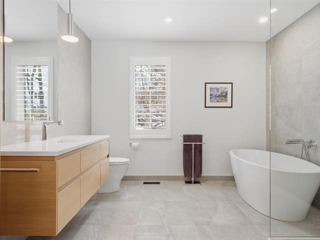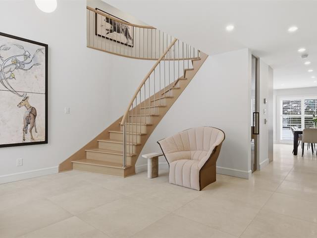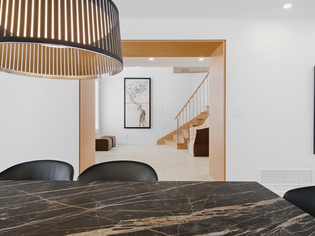 La résidence comprend 3 chambres et 3 salles de bain, dont une attenante à la chambre principale située au rez-de-chaussée. L'aire de vie à concept ouvert est baignée de lumière naturelle grâce à une fenestration abondante. Les plafonds cathédrale au salon et à la salle à manger accentuent l'espace et la luminosité.