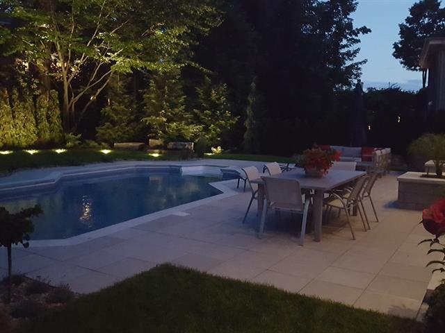 Implantée sur deux lots totalisant 4058.9 pc, elle bénéficie d'un emplacement très privé et d'un aménagement paysager soigneusement pensé pour profiter pleinement de l'extérieur. Une vaste terrasse de 600 pi² surplombe le terrain, parfaite pour recevoir ou relaxer en toute tranquillité.