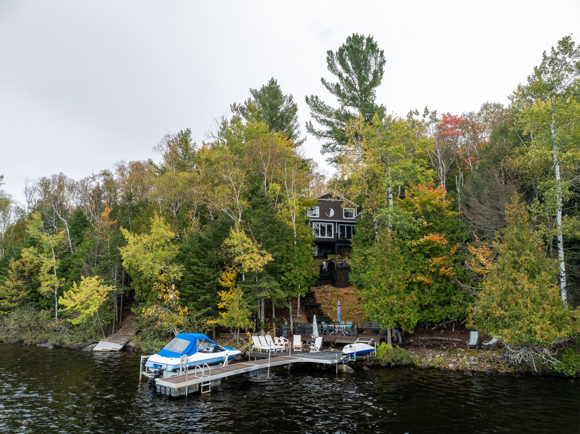 Propriété sur le majestueux Lac des Écorces avec vue sur le lac venez profiter des ses terrasses extérieures avec patio spa et auvent retractable un rez de chaussée avec fenestration abondante vous permet de vous plonger autant dans la nature que sur l'eau agrémenté par ses poêles au bois cette propriété vous assure une ambiance agréable et chaleureuse un garage détaché double complètement fini avec abri ainsi qu'un salle d'entrainement La propriété se trouve a environ 15 min de Mont-Larier et de tout ses services
