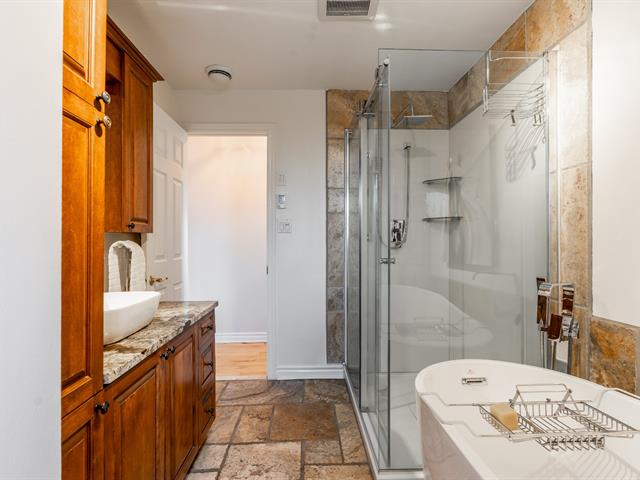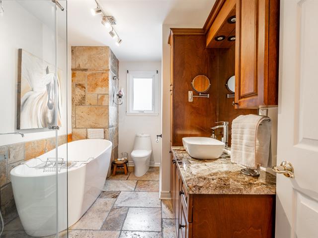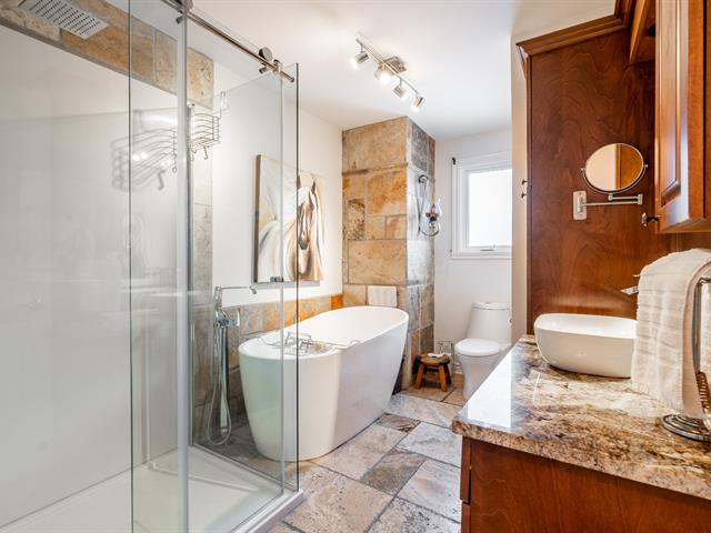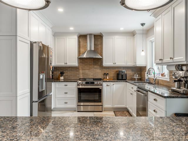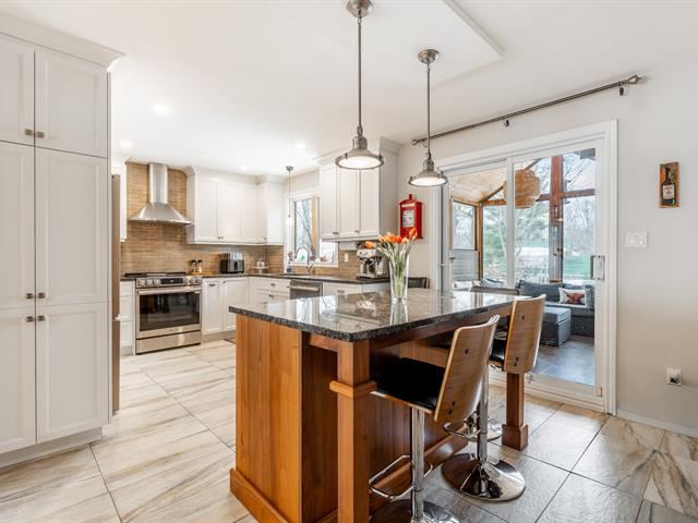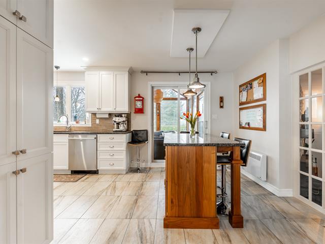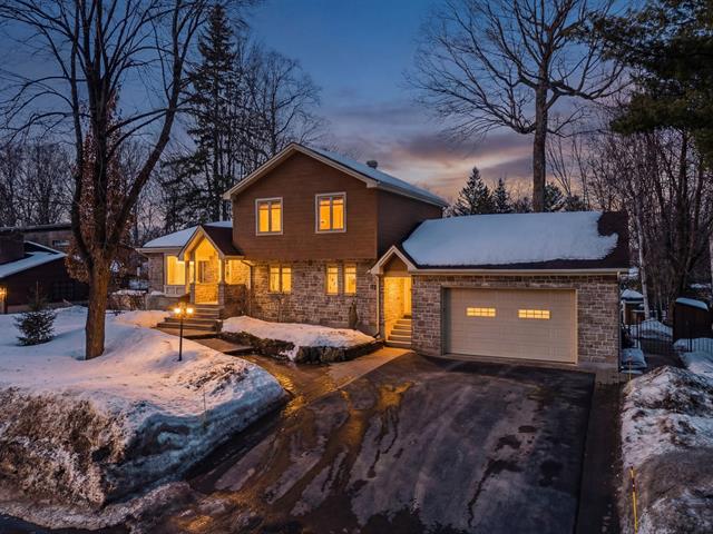 Splendide propriété récente au design unique et entièrement clé en main! Dès l'entrée, vous serez impressionné par son aire ouverte lumineuse avec toit cathédrale en bois et sa cuisine spectaculaire munie d'un immense îlot et d'un vaste rangement. La mezzanine flottante accueille une véritable suite des maîtres avec walk-in et salle de bain privée. Le sous-sol aménagé propose une grande salle familiale avec poêle aux granules, coin bar, une 3e chambre et une autre salle de bain. À l'extérieur: portail électrique, grande terrasse couverte équipée, coin feu en pierre, remise 24 x 12 et terrain bordé d'un charmant ruisseau.Une propriété distinct
