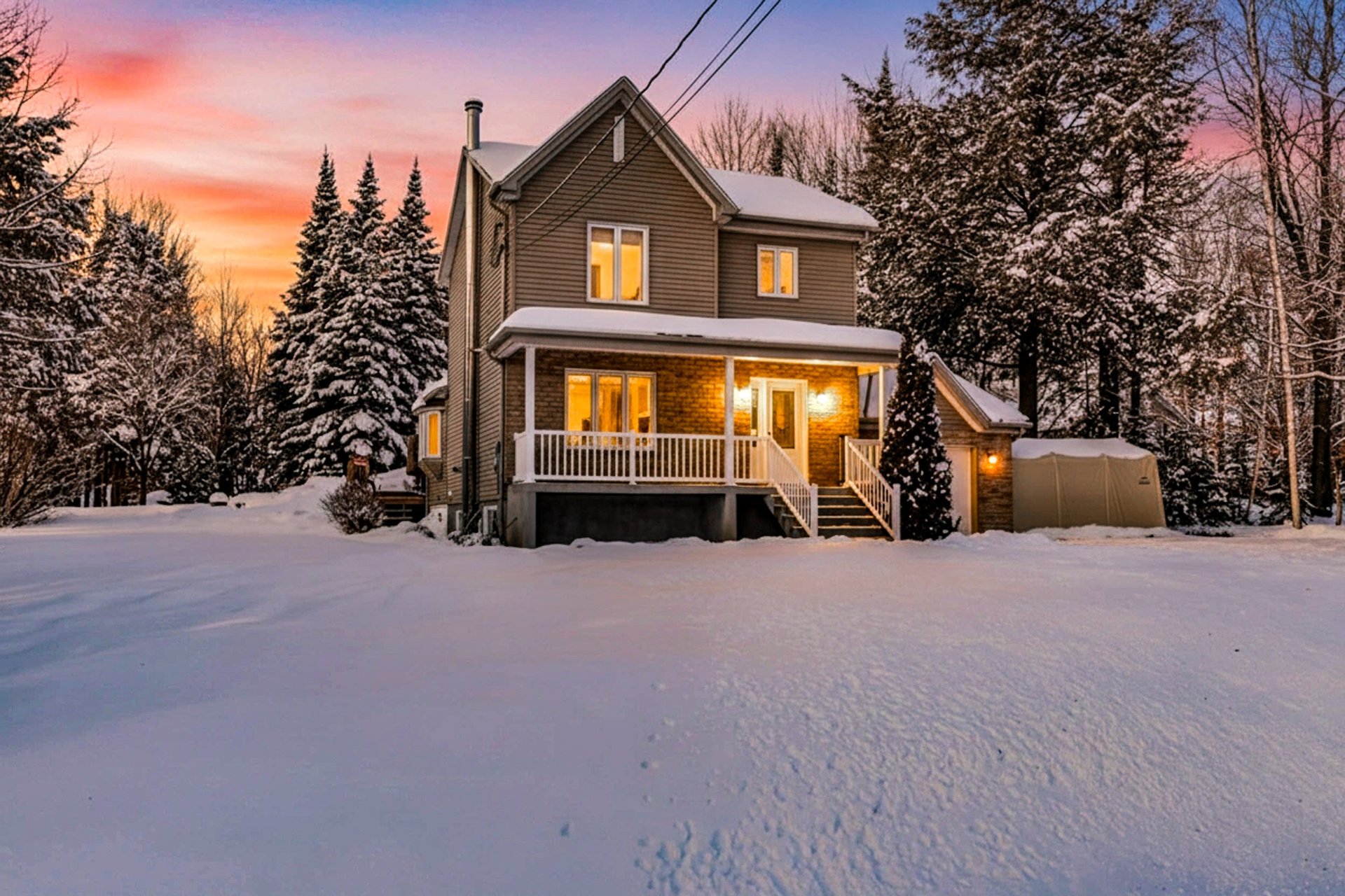 Elle offre 3 chambres à l'étage, une salle de bain et une salle d'eau, une cuisine fonctionnelle ainsi qu'une grande véranda lumineuse. Le sous-sol comprend une salle familiale avec poêle à bois et poêle aux granules et une salle mécanique incluant un espace laveuse-sécheuse (possibilité de les remettre à l'étage selon vos besoins).