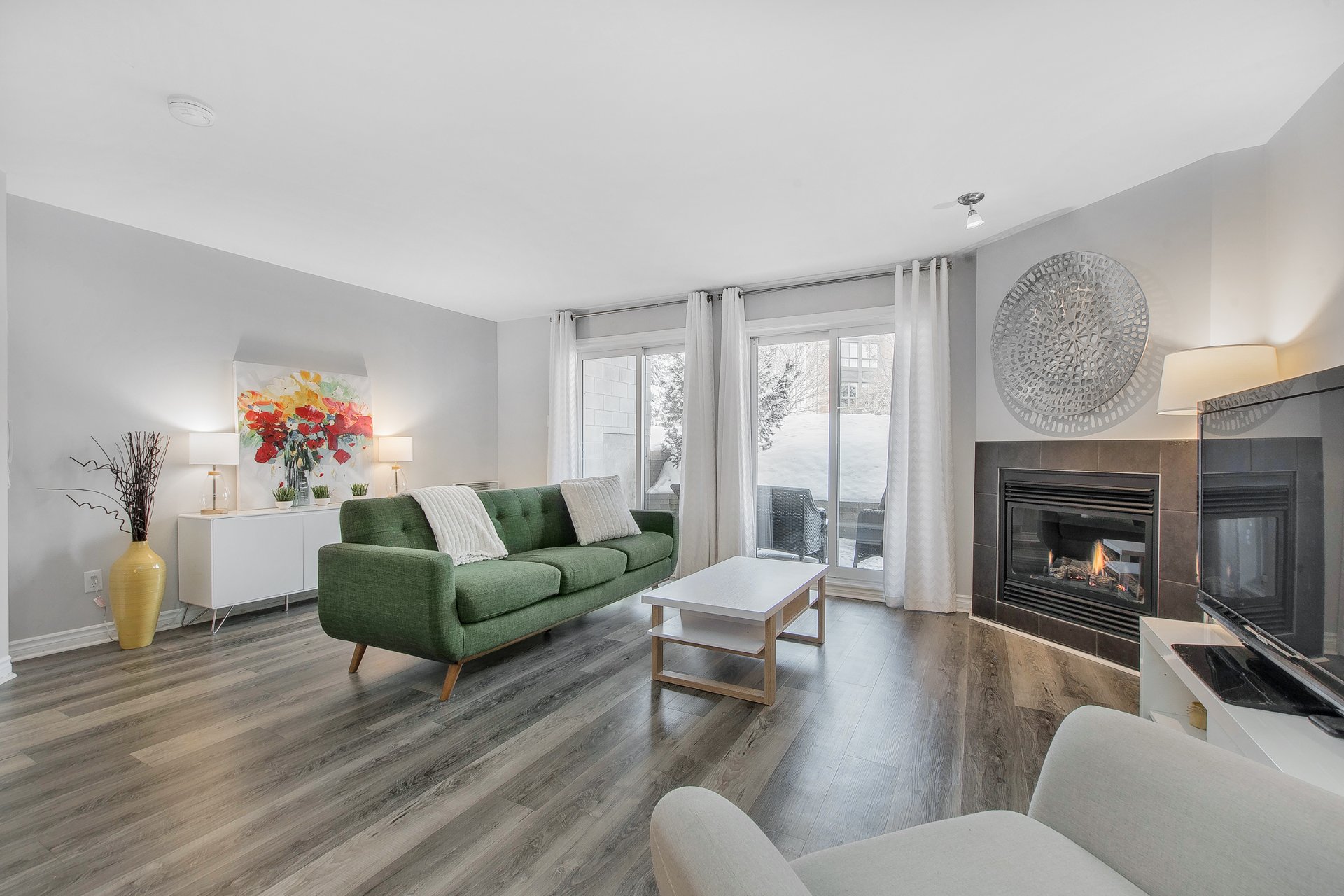 - Salon avec foyer au gaz vous offrant une belle ambiance durant les temps frais