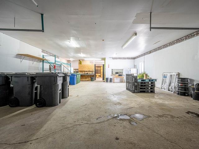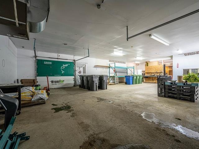 Entrepôt : 1 413 pi² avec 2 portes de garage (avant et arrière), plafond 10 pieds, bureau d'employé et toilette aménagés.