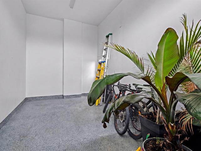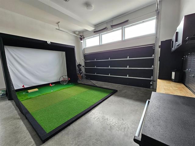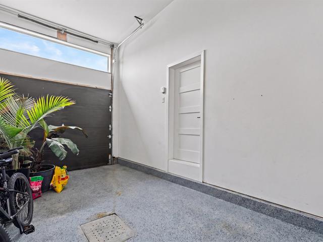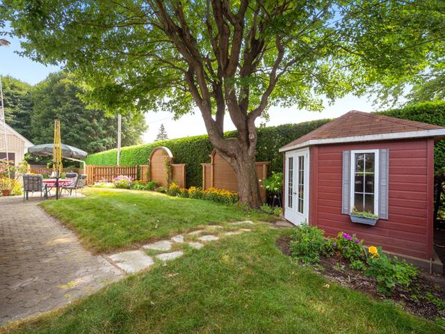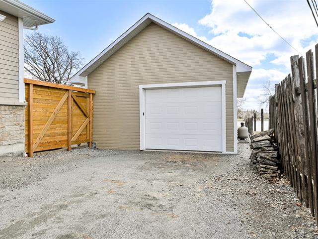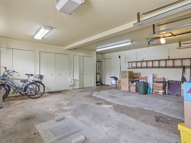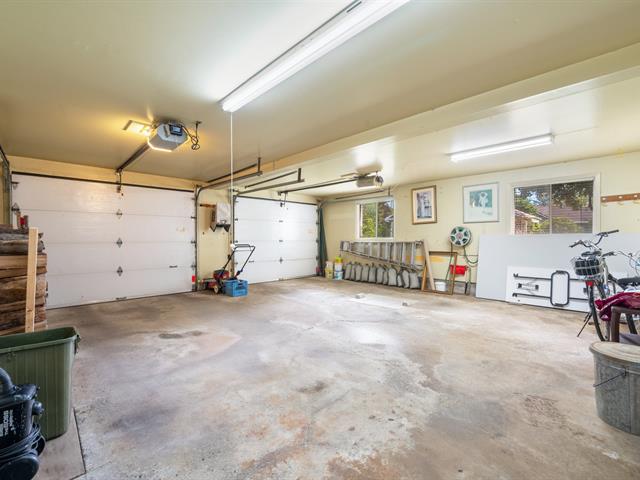 Le garage doté d'un plancher d'époxy et de systèmes de rangement muraux, constitue un espace propre et bien organisé. Un cabanon extérieur complète les installations.