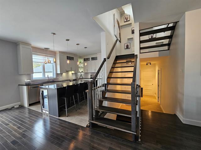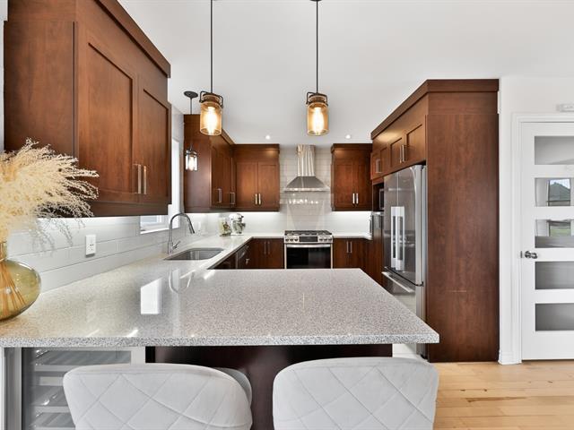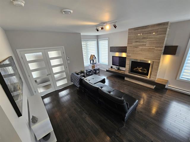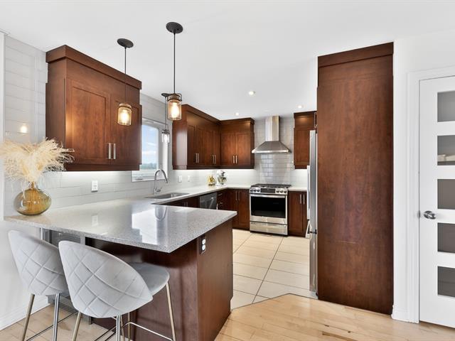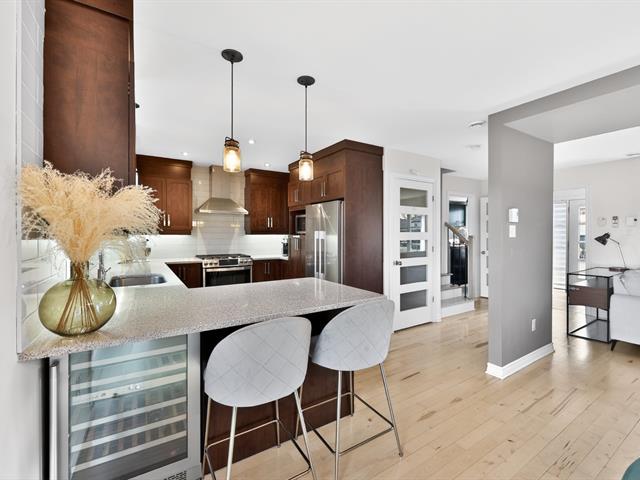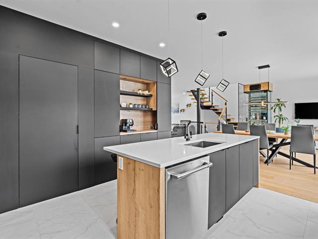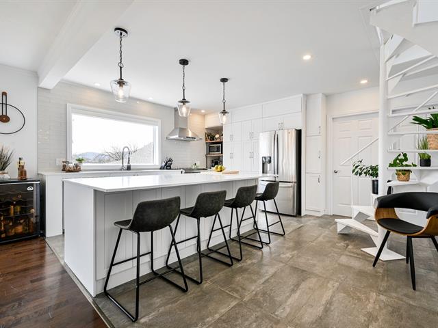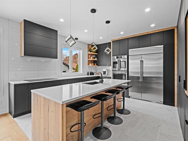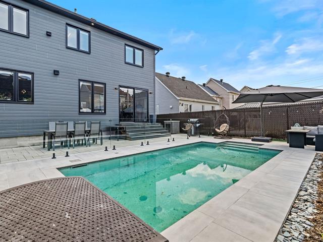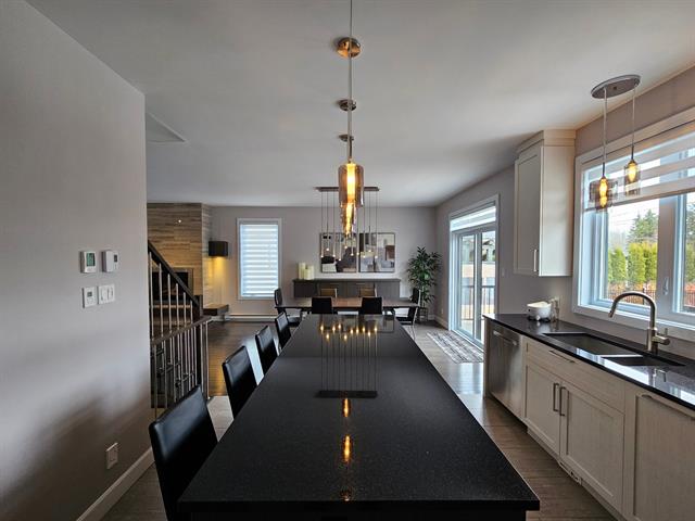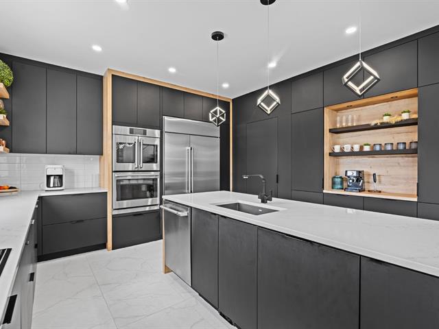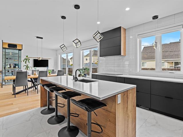 Propriété contemporaine entièrement repensée offrant des espaces impressionnants et une luminosité remarquable. Aire de vie ouverte au design actuel dominée par une cuisine spectaculaire avec immense îlot et accès direct à une terrasse couverte avec cuisine extérieure. Cinq chambres dont une superbe suite principale avec coin détente et salle de bains raffinée. Sous-sol aménagé avec grande salle familiale. Cour aménagée avec piscine creusée invitant à profiter pleinement de l'été. Garage avec plancher d'époxy et rangements intégrés. Située dans le quartier prisé Val des Arbres près des parcs, écoles et services. Une propriété d'exception!