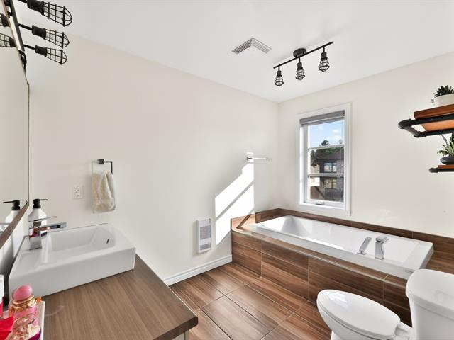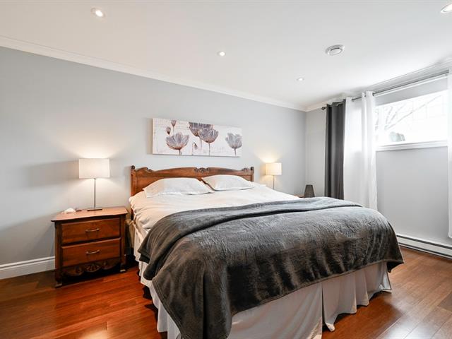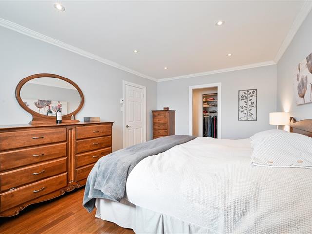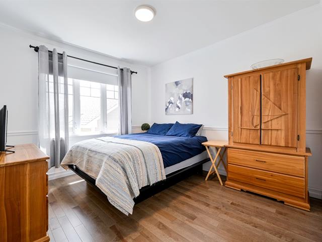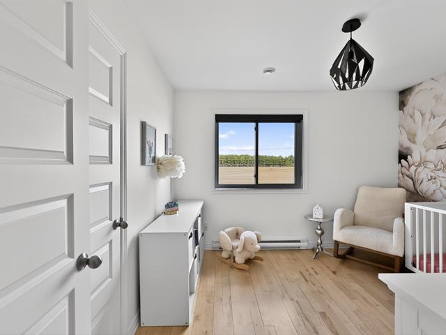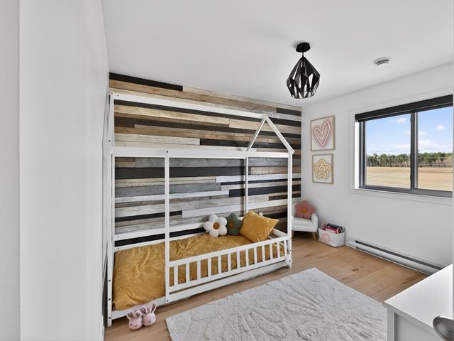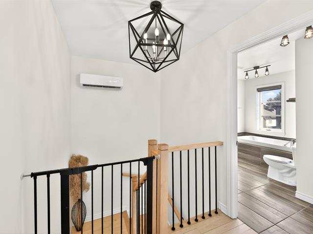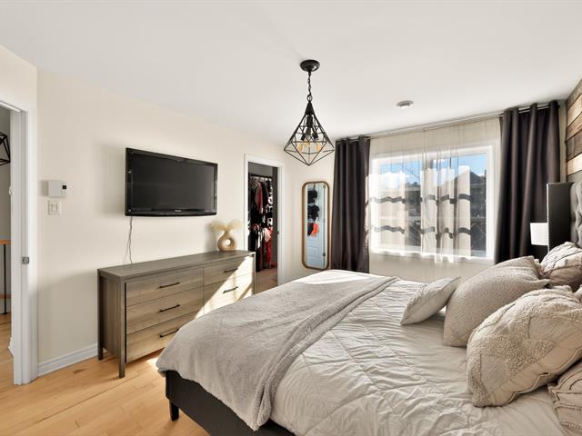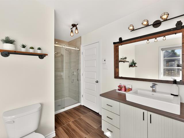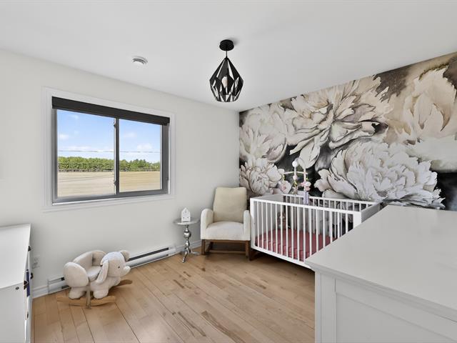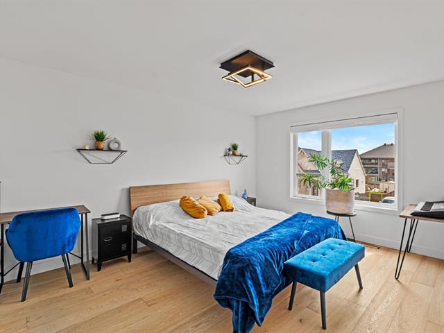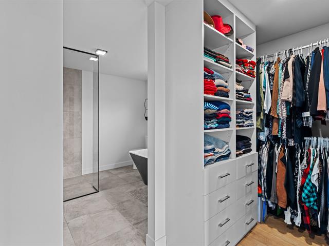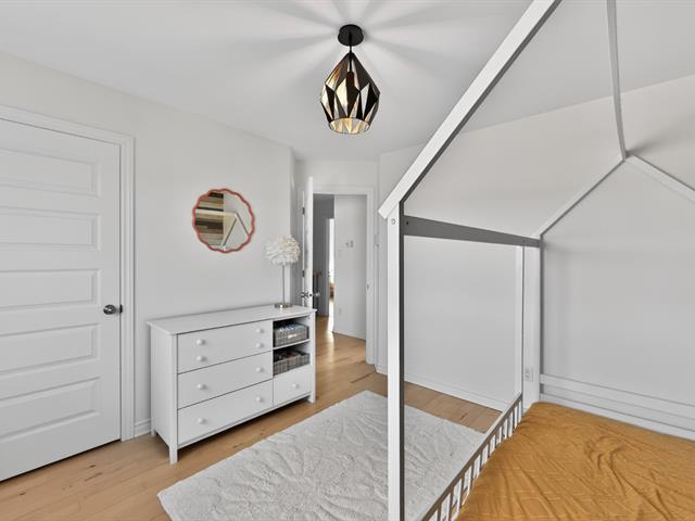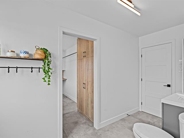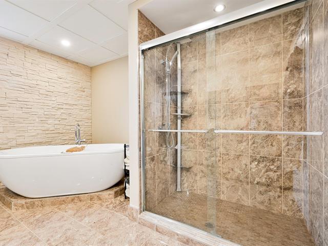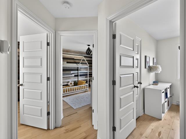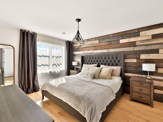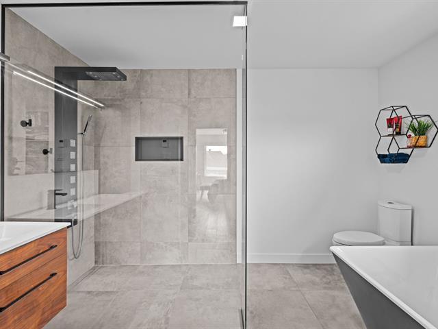 À l'étage principal se trouvent trois chambres, dont le quartier des maîtres. Véritable espace privé, celui-ci comprend un coin détente avec foyer, un walk-in aménagé et une salle de bains attenante au design soigné avec grande douche vitrée et double vanité. Une seconde salle de bains avec plancher chauffant et bain autoportant dessert les autres chambres.