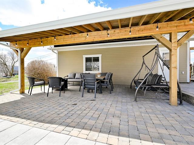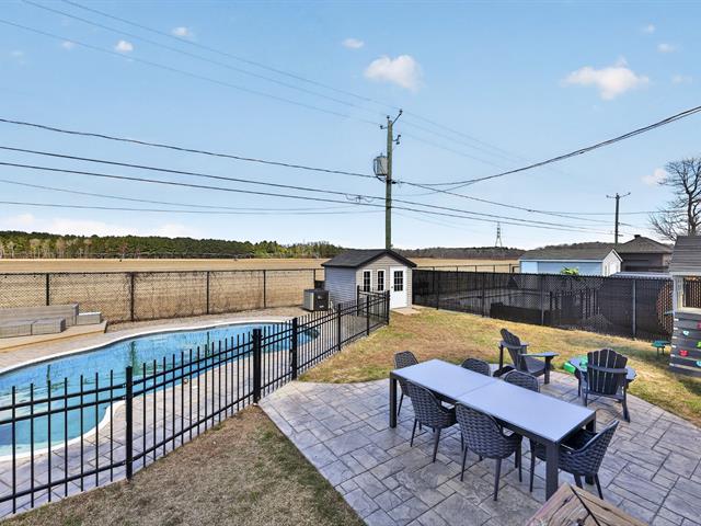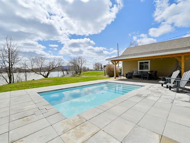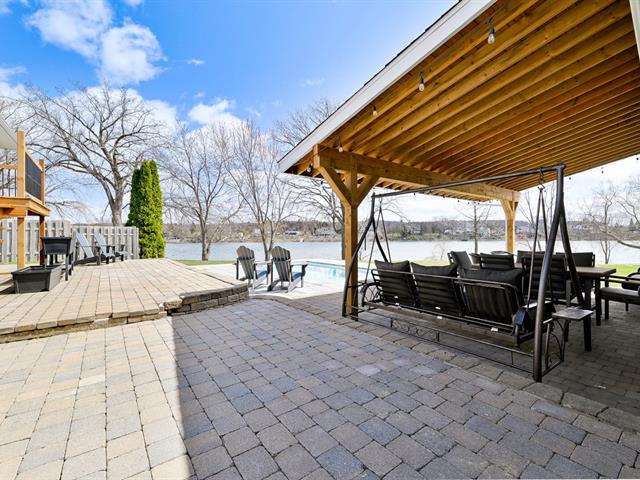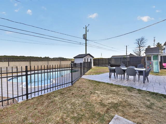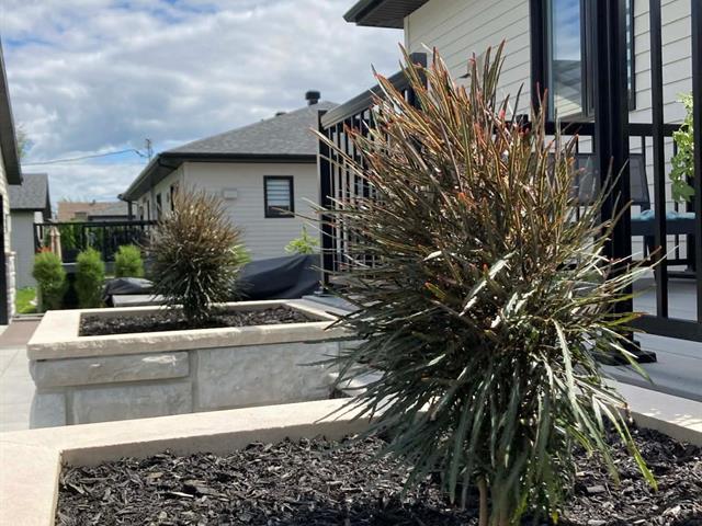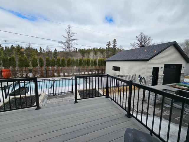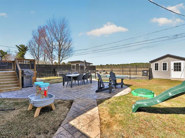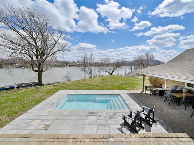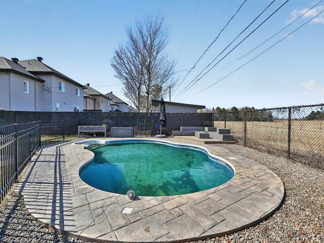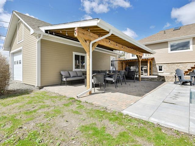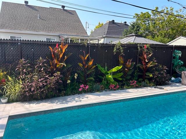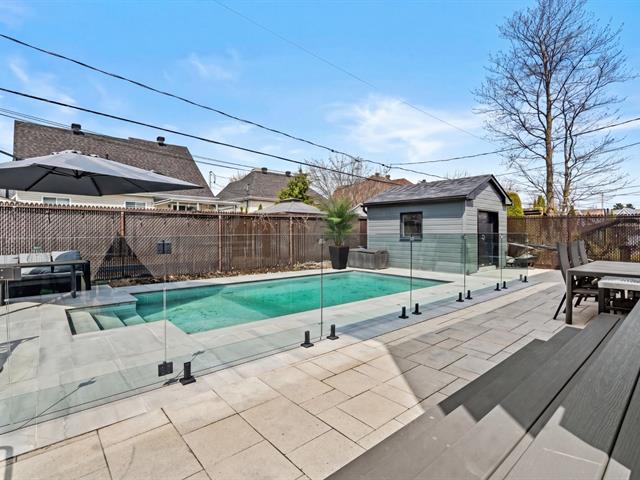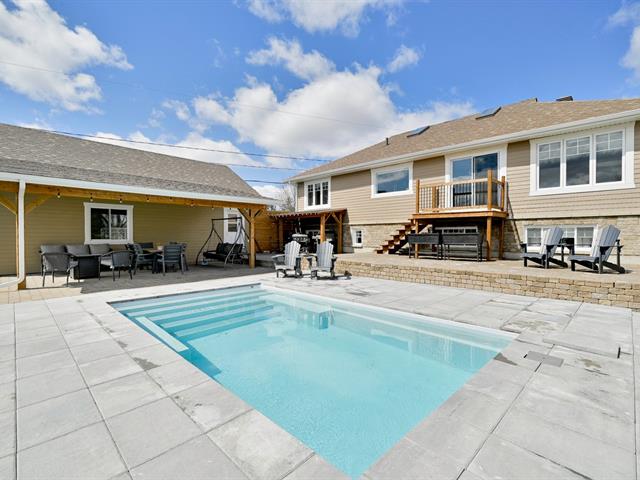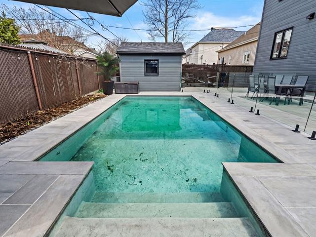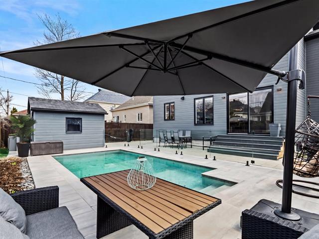 À l'extérieur, la cour arrière a été aménagée pour profiter pleinement de la belle saison. Piscine creusée, espaces de détente et aménagement paysager créent un environnement intime et paradisiaque.