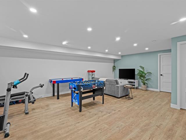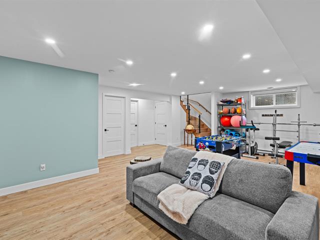Le sous-sol entièrement aménagé ajoute une vaste salle familiale parfaite pour les soirées cinéma, les jeux ou un espace détente, en plus d'une cinquième chambre et d'une salle de bains complète.