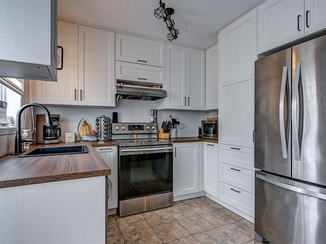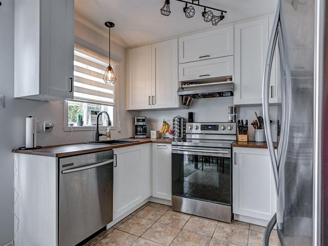 Le rez-de-chaussée à aire ouverte, doté d'une grande cuisine avoir armoires de style shaker, propose un espace de vie lumineux et convivial. Les planchers de bois se retrouvent au rez-de-chaussée ainsi qu'au sous-sol entièrement aménagé, lequel comprend un foyer au bois, ajoutant une touche conviviale et appréciée en toute saison.