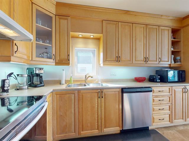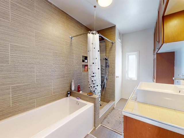 La cuisine propose de magnifiques armoires en bois sur mesure réalisées par un ébéniste, gage de durabilité et de qualité supérieure. La salle de bain, entièrement rénovée en 2024, présente un style moderne avec une grande douche vitrée, un bain autoportant et une vanité contemporaine. De plus, toutes les thermos ont été remplacés en mai 2025, un investissement important déjà effectué pour votre tranquillité.