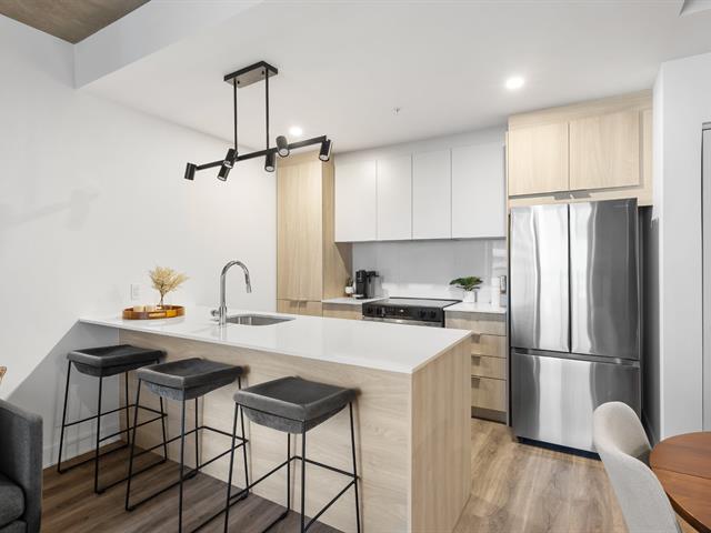 L'aire de vie principale, aménagée en concept à aire ouverte, est baignée de lumière naturelle abondante et offre une disposition idéale pour recevoir famille et amis. Celle-ci s'ouvre sur un grand balcon privé, parfait pour profiter des beaux jours.