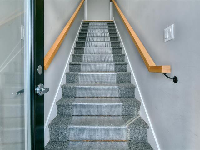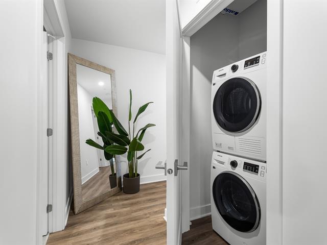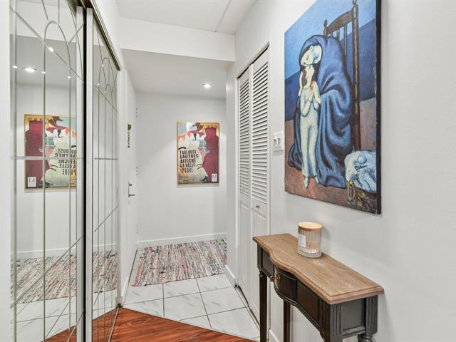 Le condo inclut également un stationnement intérieur de grande dimension, suffisamment spacieux pour accueillir une voiture ainsi qu'une moto, un avantage rare et très recherché dans ce secteur. Un espace de rangement privé vient compléter les commodités de cette unité.