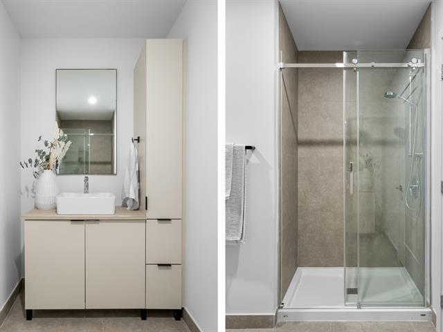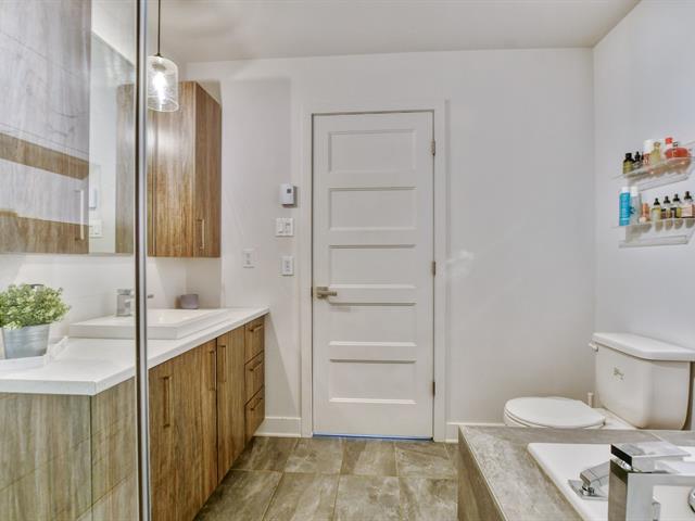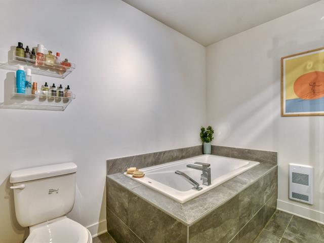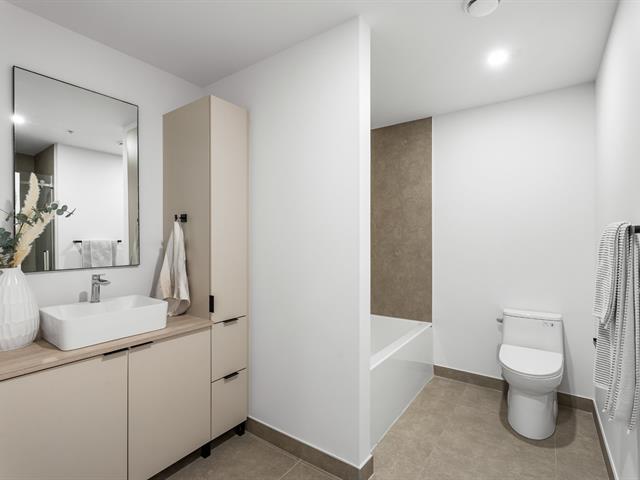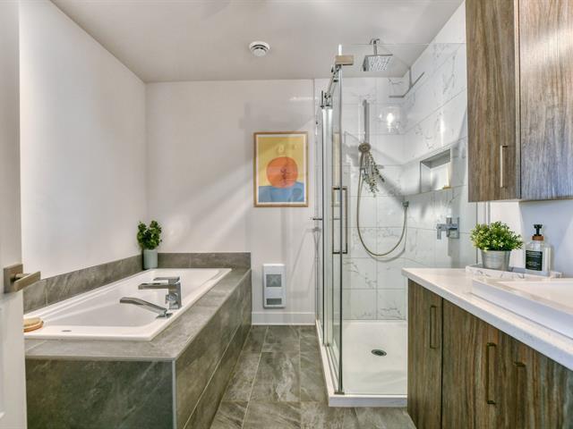 L'unité propose deux chambres à coucher, dont une spacieuse chambre principale avec walk-in et salle de bain attenante, créant un espace privé et confortable. La salle de bain principale se distingue par son magnifique bain autoportant contemporain, offrant un espace détente digne d'un spa à la maison.
